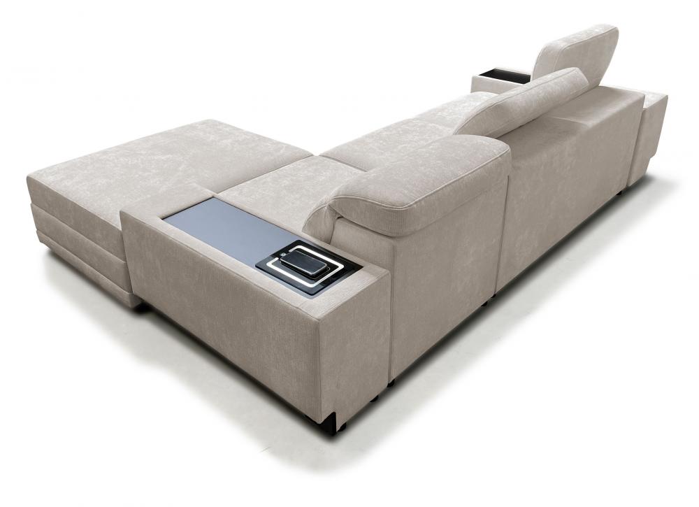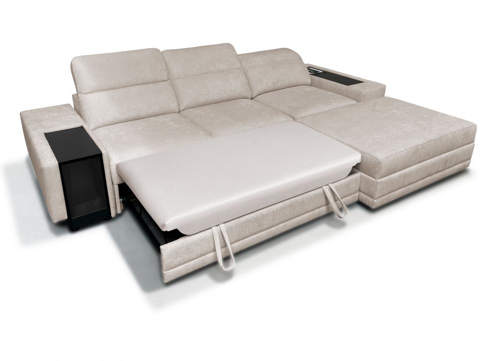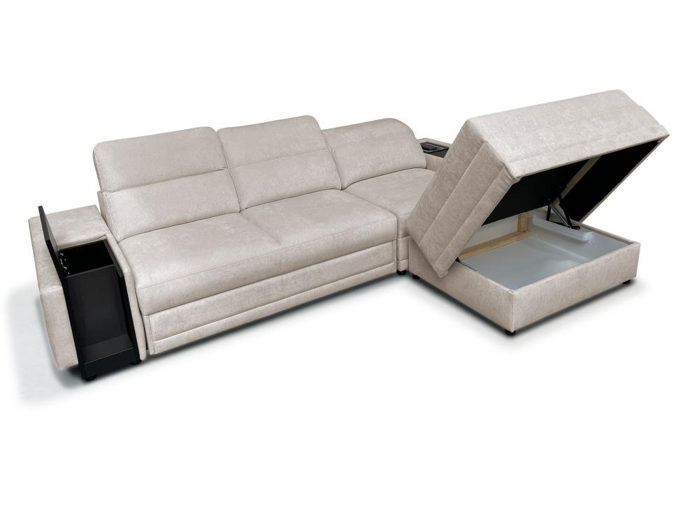 - narożnik z funkcjonalnym szezlongiem – pufa na zaczepy "krokodylki" pozwala stworzyć leżankę lub służy jako osobne siedzisko, z możliwością schowania zaczepów pod mebel.
