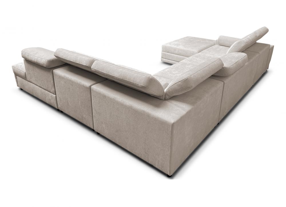 - narożnik z funkcjonalnym szezlongiem – pufa na zaczepy "krokodylki" pozwala stworzyć leżankę lub służy jako osobne siedzisko, z możliwością schowania zaczepów pod mebel.